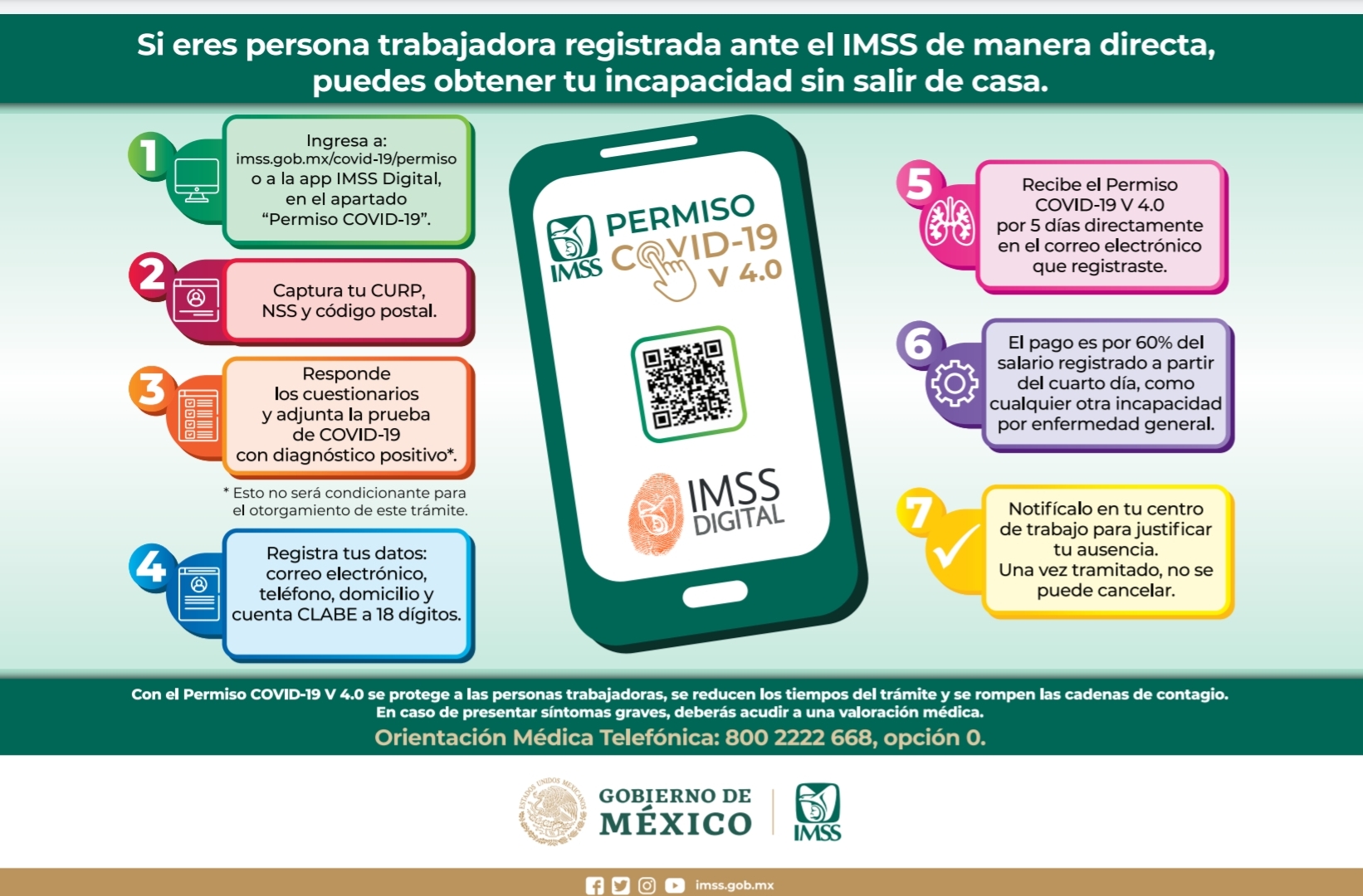 Para tramitarlo, no es necesario realizarse una prueba de COVID-19 y los trabajadores recibirán un subsidio del 60 por ciento del salario registrado en el IMSS durante los días cuarto y quinto de incapacidad.