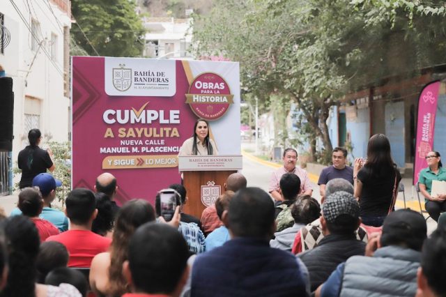 Este miércoles, en el Pueblo Mágico de Sayulita, la alcaldesa Mirtha Iliana Villalvazo Amaya entregó la obra de pavimentación con piedra ahogada y huellas de concreto hidráulico de la calle Manuel M. Plasencia, esto en compañía además del equipo de la Dirección de Obras Públicas, el regidor de la demarcación, Antonio Plácito y directores de algunas áreas del XI Ayuntamiento.