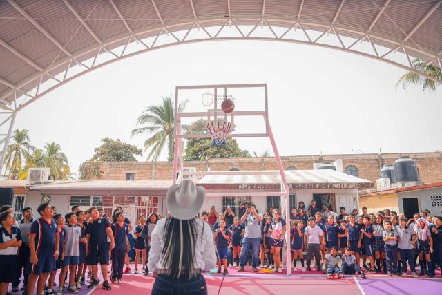 Al terminar la entrega oficial del domo, la alcaldesa Mirtha Villalvazo, en compañía de la directora de Bienestar Social, Perla Alarcón, entregaron artículos de equipamiento para 13 de 36 escuelas que obtendrán este apoyo con insumos para mejoras en las escuelas.