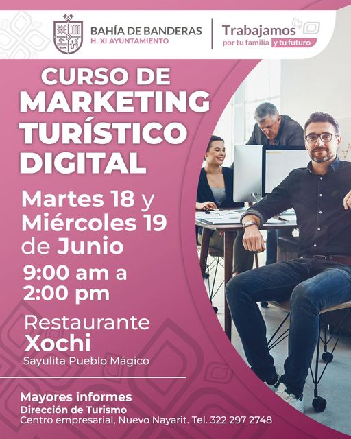 El primero de ellos es sobre Marketing Turístico Digital; este se llevará a cabo en el restaurante Xochi, de la localidad de Sayulita, los días 18 y 19 de junio, de 09:00 de la mañana a 02:00 de la tarde.