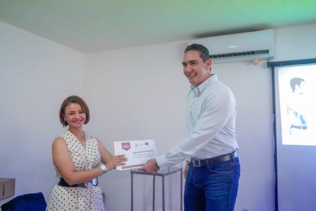 En el cierre del evento, Héctor Santana otorgó un reconocimiento a la maestra Oralia Ceballos Hernández por impartir el curso “El conflicto y la anatomía de la ira”. Este taller, dirigido a los elementos de seguridad, se centró en el manejo de conflictos y el desarrollo de inteligencia emocional. “Ustedes son servidores públicos, y este curso refuerza su capacidad para atender de manera profesional y respetuosa a la ciudadanía,” expresó el alcalde.