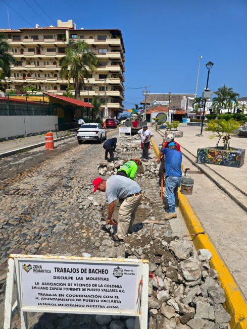 El Ayuntamiento de Puerto Vallarta intensificó los trabajos de rehabilitación de calles y banquetas en distintas zonas del municipio, como parte de su programa permanente de mantenimiento urbano.