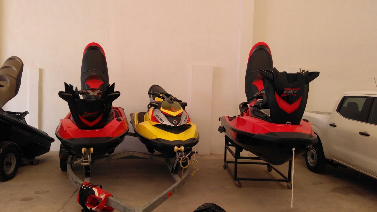 Asimismo, se localizaron cinco motocicletas acuáticas, de las cuales dos son rojas, dos negras y una amarilla.