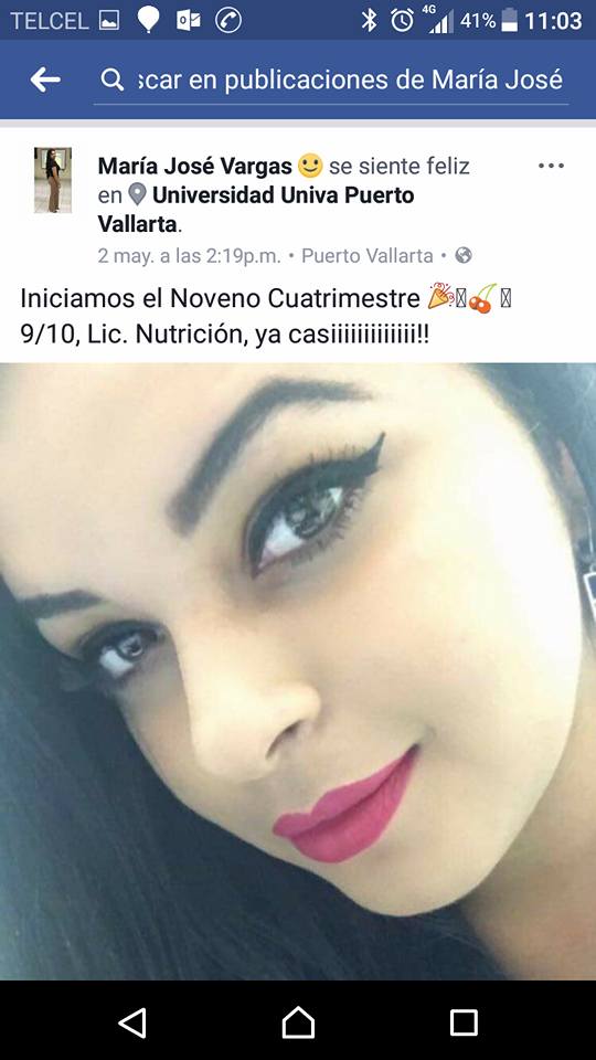 Donde sí se puede encontrar a María José es en la Univa donde sí trabaja de 7:30 am a 2 pm, antes como asistente de Dirección y ahora en la biblioteca de la misma universidad, en la que también está por las tardes para terminar la Licenciatura en Nutrición. Todo eso también es patente a través de su facebook, además que hoy lunes se le tomó una fotografía en la misma biblioteca a las 12 pm.