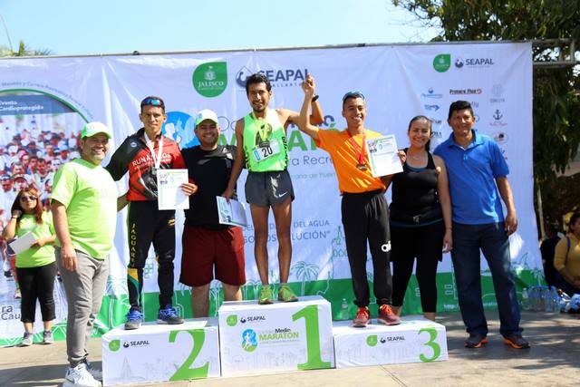 El guanajuatense Fernando Cervantes Caudillo, conquistó el Medio Maratón en la rama varonil, tras recorrer el circuito de 21 kilómetros sobre el Boulevard Francisco Medina Ascencio con un tiempo de 1:06:10. Completaron el podio de vencedores, Israel Oropeza Vázquez del Club Jaguares y Carlos Fernando González Quintero del Club Atletismo Garras.