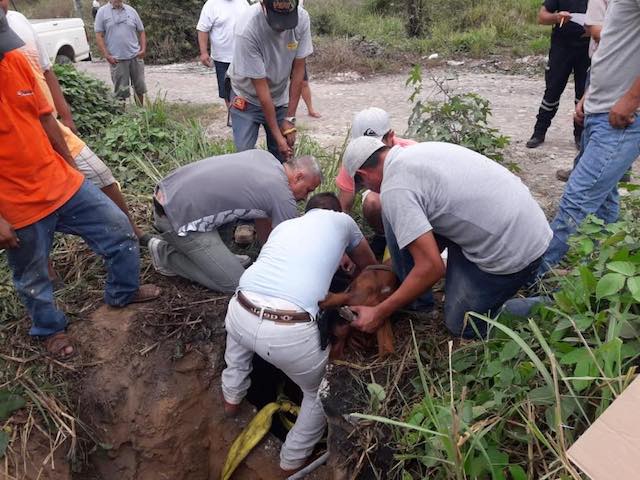 De forma coordinada, el personal de Fomento Agropecuario, Protección Civil y Obras Públicas del gobierno municipal de Puerto Vallarta, llevaron a cabo el rescate de una yegua que se encontraba atrapada en un registro, en donde se tomaron las medidas necesarias para que el asustado animal saliera sin daño alguno.
