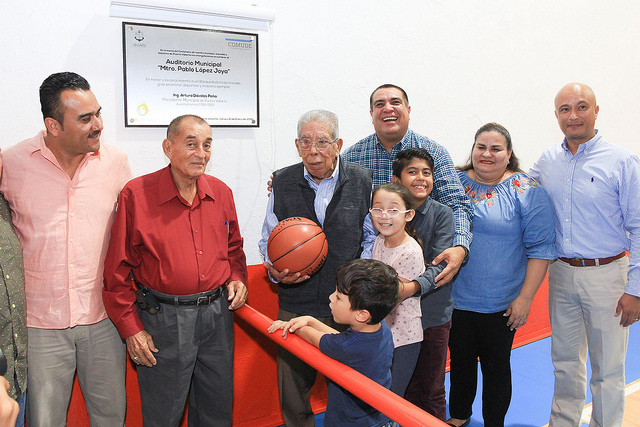 Como un merecido reconocimiento a su trayectoria en el ámbito deportivo y educativo, el gobierno municipal que encabeza Arturo Dávalos Peña, develó la placa que le da el nombramiento oficial del Maestro Pablo López Joya, al auditorio de la unidad deportiva Agustín Flores Contreras.