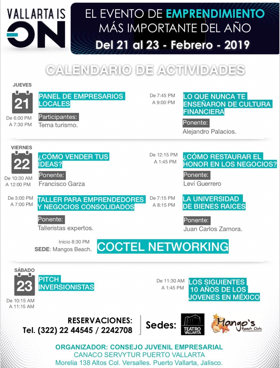 La Cámara Nacional de Comercio, Servicios y Turismo de Puerto Vallarta invitan a la población al evento de emprendimiento más importante del año “Vallarta is On”, el cual se celebrará del 21 al 23 de febrero como parte de los festejos del 50 Aniversario de de Canaco.