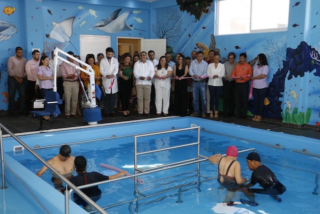 En el marco del segundo aniversario de la Unidad Regional de Rehabilitación (URR), este lunes la presidenta del Sistema DIF, Candelaria Tovar de Dávalos, y el alcalde Arturo Dávalos Peña, inauguraron el tanque terapéutico que beneficiará a cientos de personas que acuden a recibir sus terapias.