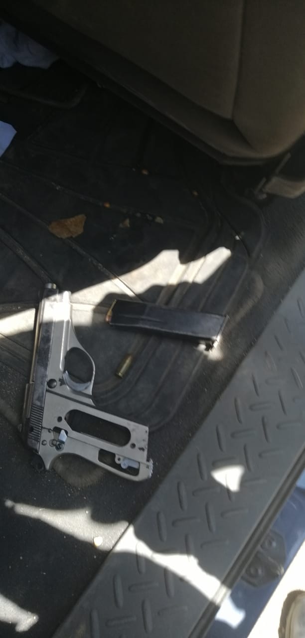 Ante el señalamiento, los oficiales estatales y de la Guardia Nacional se acercaron al sujeto, quien se encontraba a bordo de una camioneta azul marca Ford, a quien le aseguraron el arma calibre .380 abastecida con cuatro cartuchos.