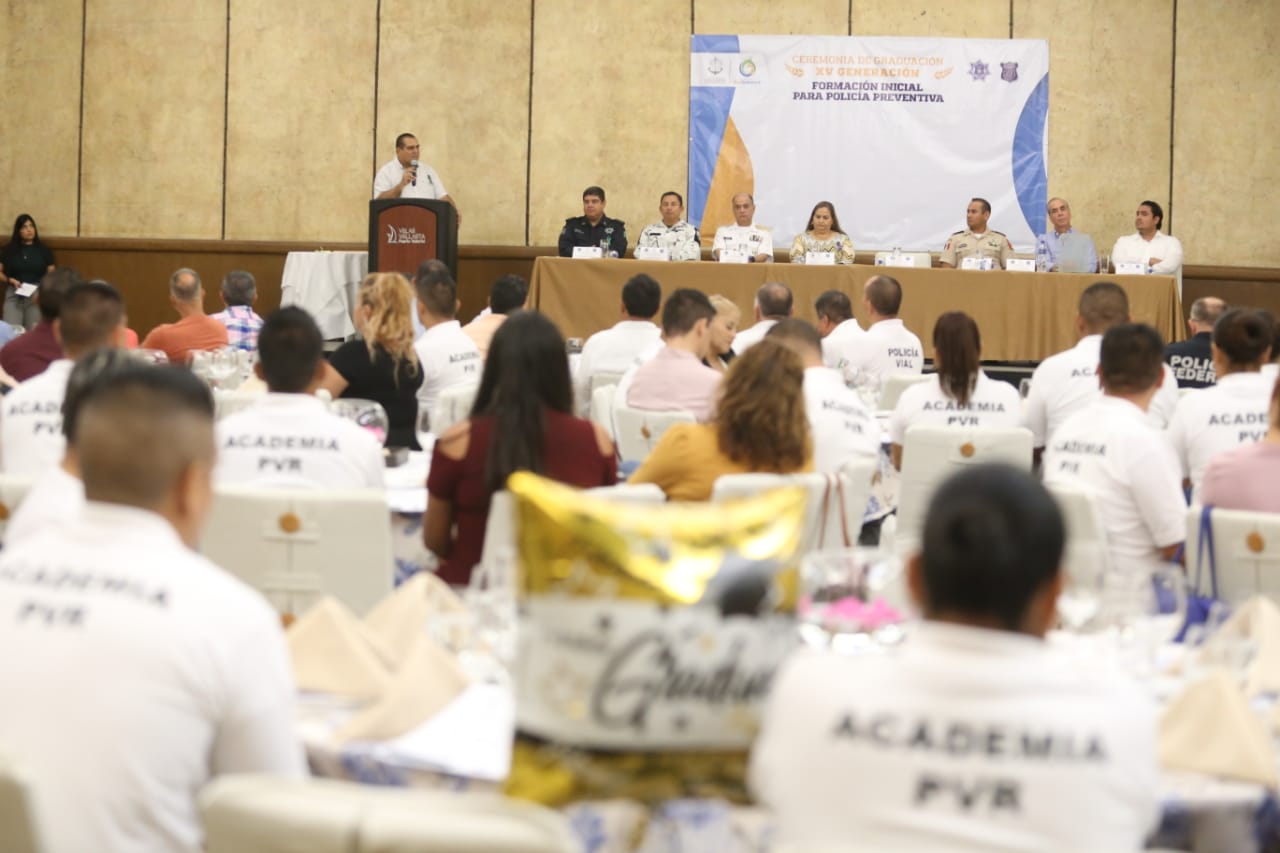Las filas de la Dirección de Seguridad Ciudadana y Vialidad de Puerto Vallarta, se fortalecen con la integración de 38 elementos que este martes concluyeron oficialmente el Curso de Formación Inicial para Policía Preventiva, quienes fueron reconocidos por el presidente municipal, Arturo Dávalos Peña, por el esfuerzo y entrega mostrados durante la preparación de esta XV Generación, y los exhortó a dar su mayor esfuerzo por esta ciudad y su gente.
