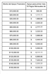 segunda ministración el Apoyo Financiero será por una cantidad igual, de conformidad a la siguiente tabla: