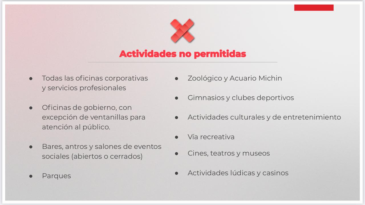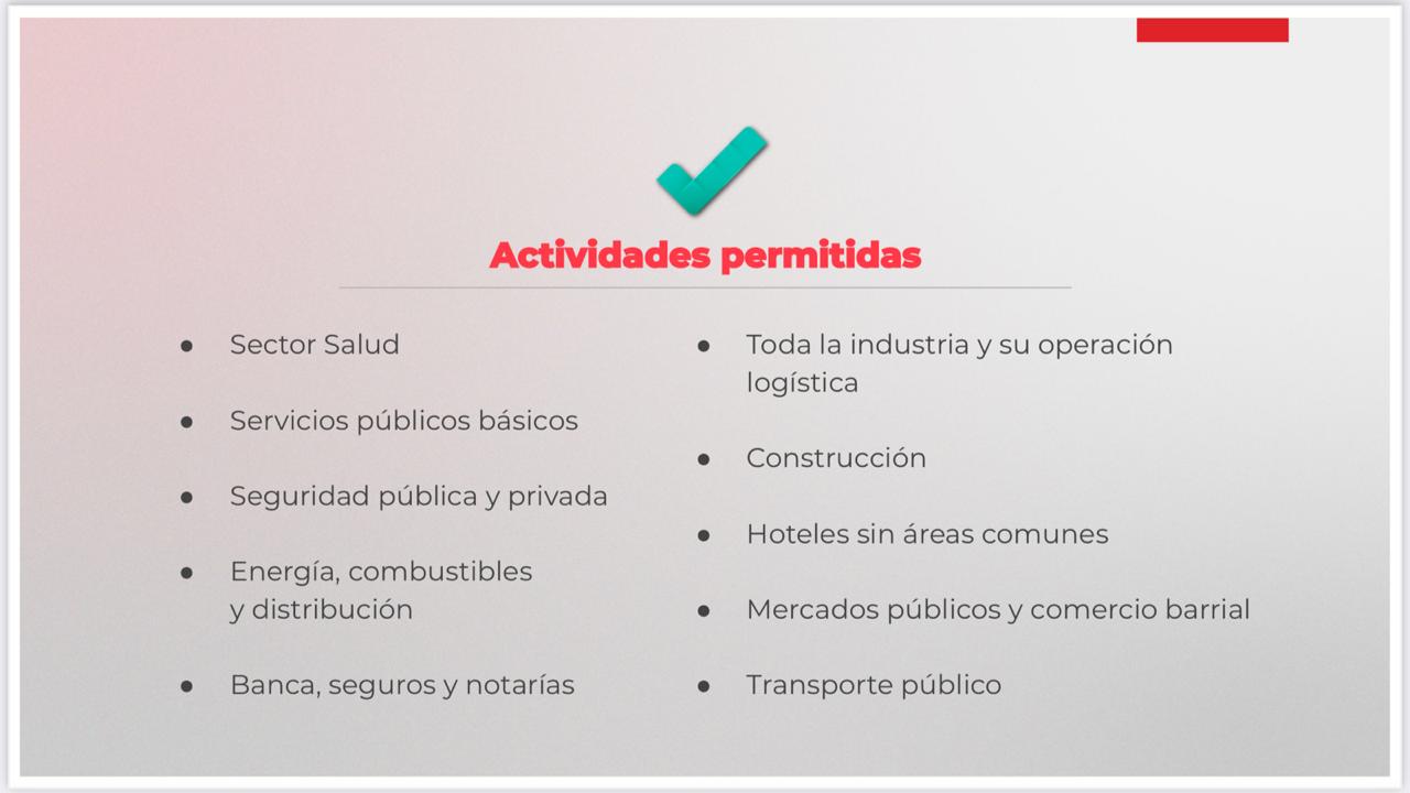 2. Se suspenden actividades laborales presenciales que puedan atenderse a distancia (Gobierno, oficinas corporativas y servicios profesionales).