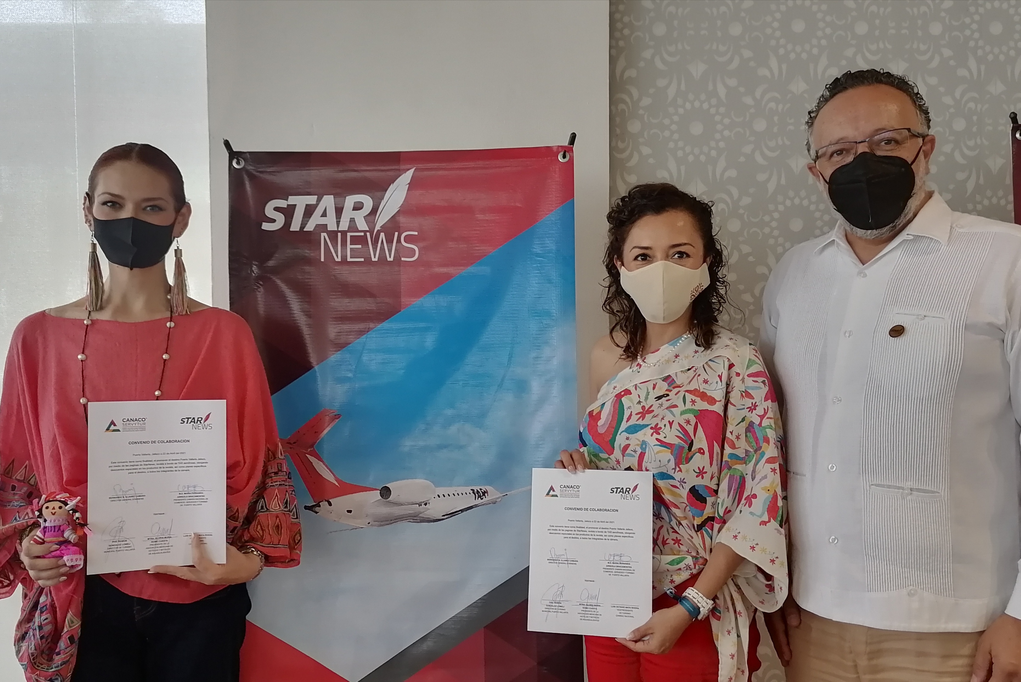 La Cámara Nacional de Comercio, Servicios y Turismo de Puerto Vallarta (Canaco) firmó un convenio de colaboración con la revista STAR NEWS de TAR Aerolíneas, quienes publicarán una edición especial sobre Puerto Vallarta.