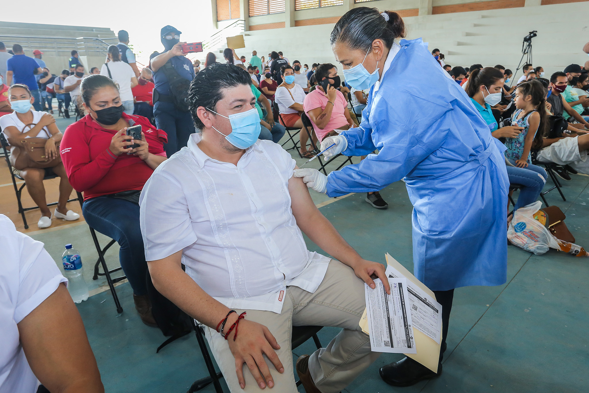 El presidente municipal interino, Jorge Antonio Quintero Alvarado, recibió este miércoles la primera dosis de la vacuna Astra Zeneca contra el Covid-19, cumpliendo así con su deber ciudadano de cuidar de su familia de esta enfermedad y del bienestar de todos los vallartenses.