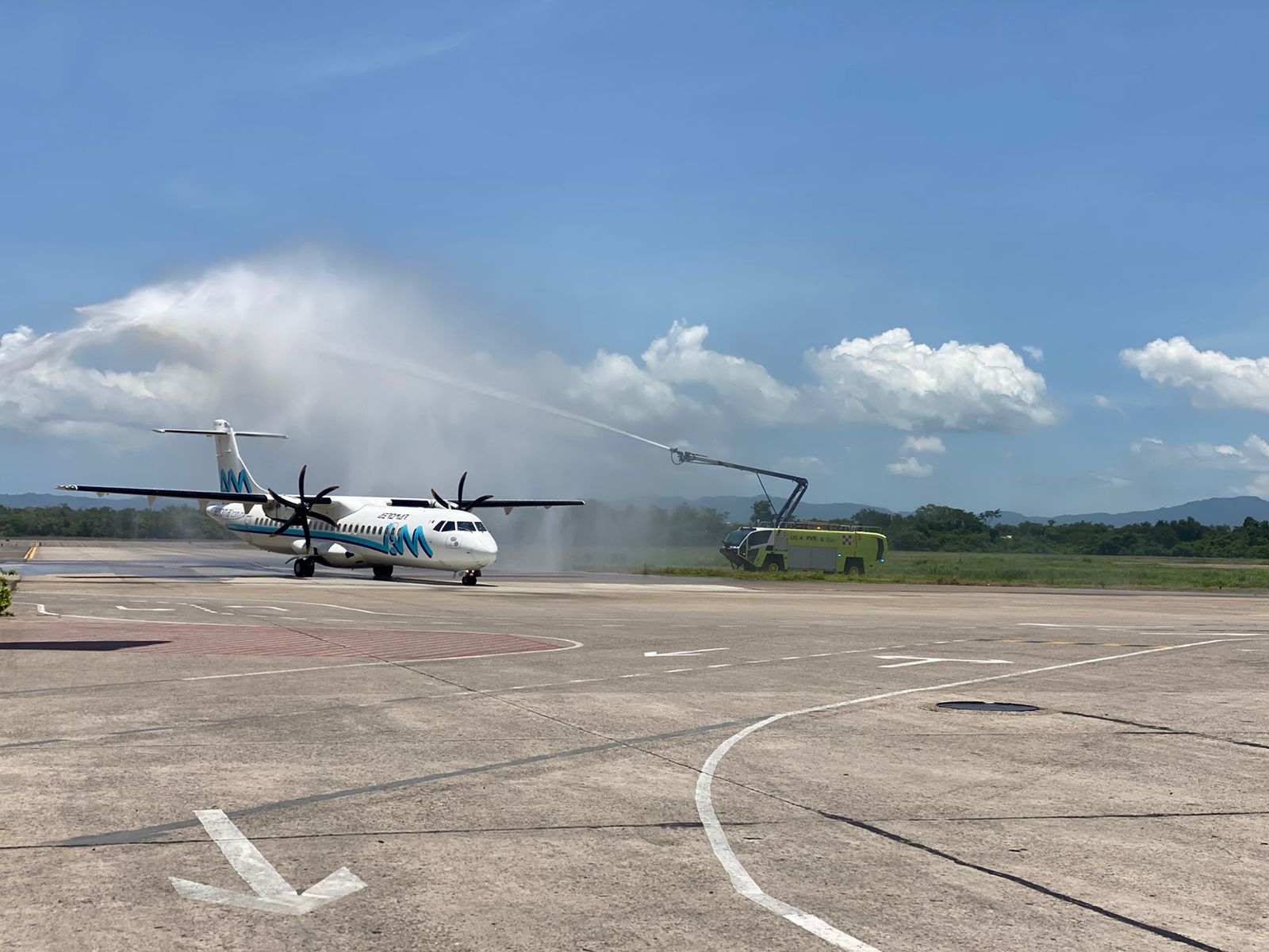 Esta tarde Puerto Vallarta le dio la bienvenida a un nuevo vuelo de la aerolínea Aeromar el cual enlaza Puerto Vallarta con Monterrey vía San Luis Potosí, lo que brinda una excelente oportunidad de atraer mayor número de turistas de dos mercados potenciales cuatro veces por semana.