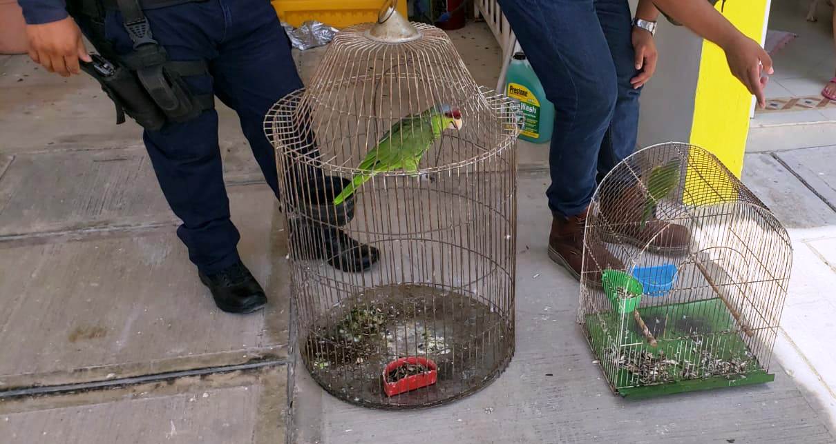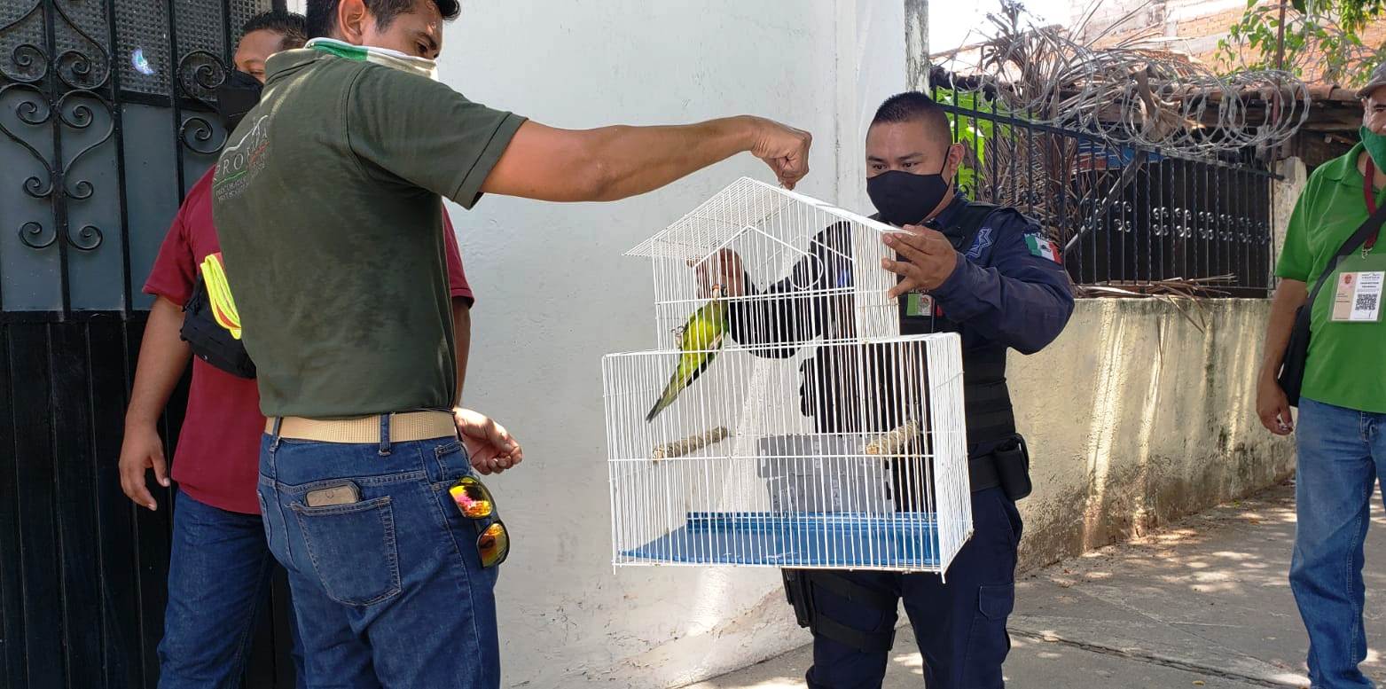 Debido a reportes y/o denuncias contra personas por tener mascotas que no deben de estar en cautiverio, elementos de la Patrulla Verde de la Dirección de Seguridad Ciudadana, apoyaron a inspectores de la Procuraduría Federal de Protección al Ambiente (PROFEPA) en recorrido en varios domicilios de donde se recogieron aves en cautiverio.