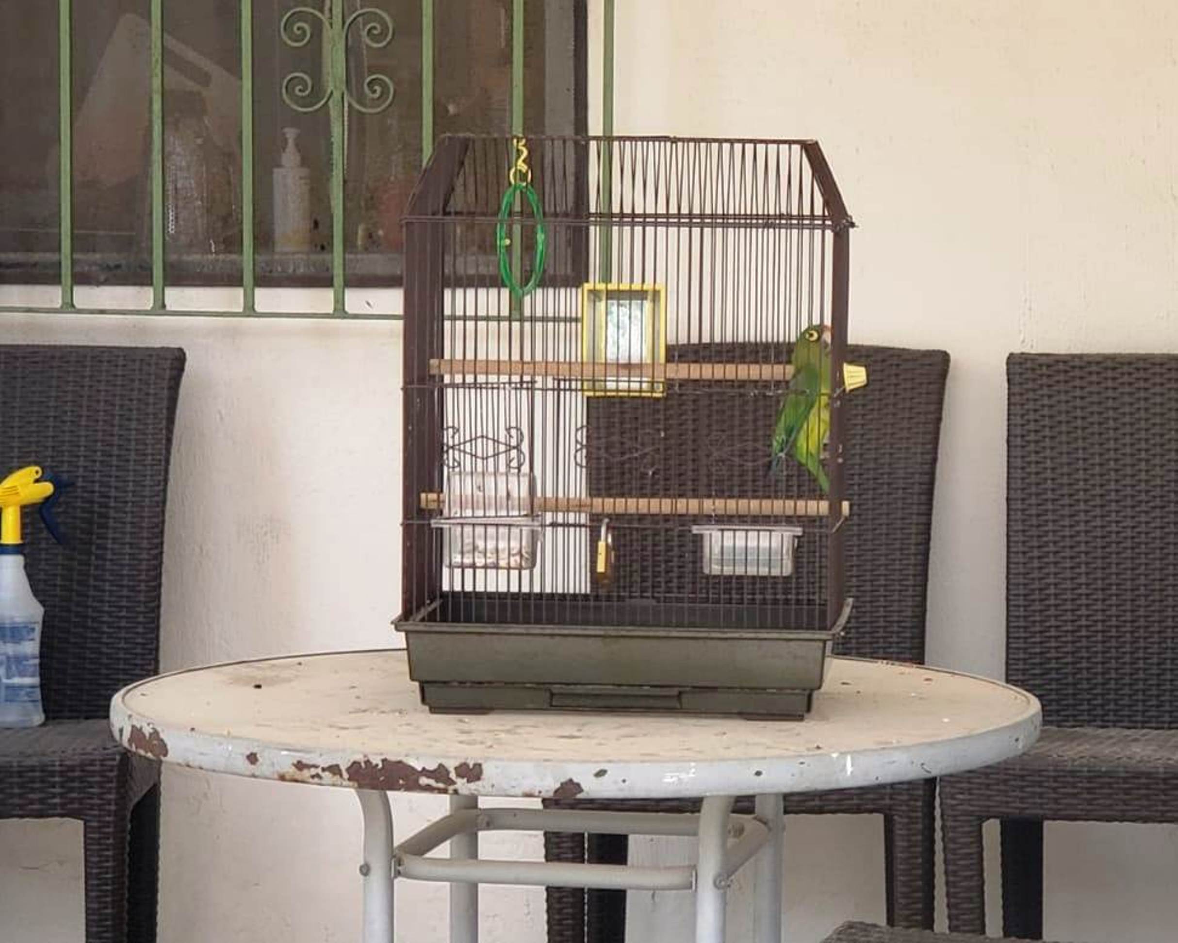 En un domicilio de la calle Mar de Cortés en Palmar de Aramara la c. María Elena de 61 años, hace la entrega voluntaria de un perico Corona lila y un perico Atolero.