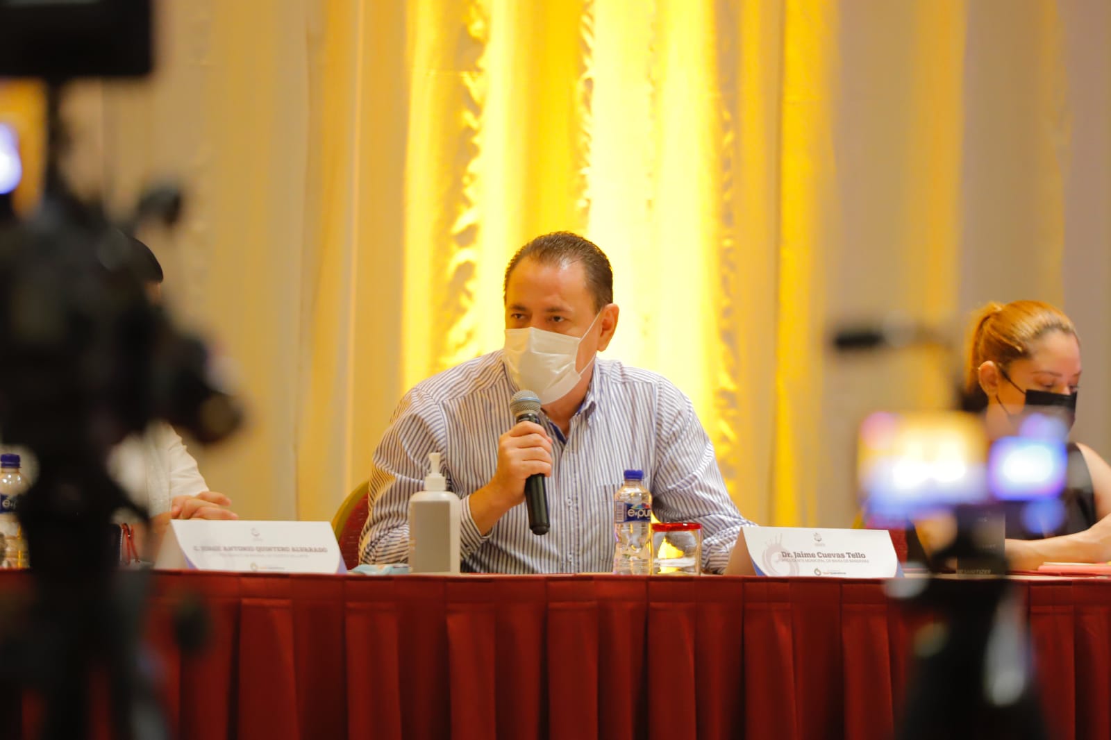 Durante la reunión de autoridades municipales y estatales de la Séptima Mesa COVID-19 Puerto Vallarta, -Segunda Intermunicipal con la presencia del alcalde de Bahía de Banderas, doctor Jaime Cuevas Tello-, el presidente municipal de Puerto Vallarta, Jorge Quintero, instruyó al subdirector de Vialidad Everardo Rubio, para realizar operativos coordinados de vigilancia de uso de cubrebocas en el transporte público que moviliza a la población entre ambos municipios.