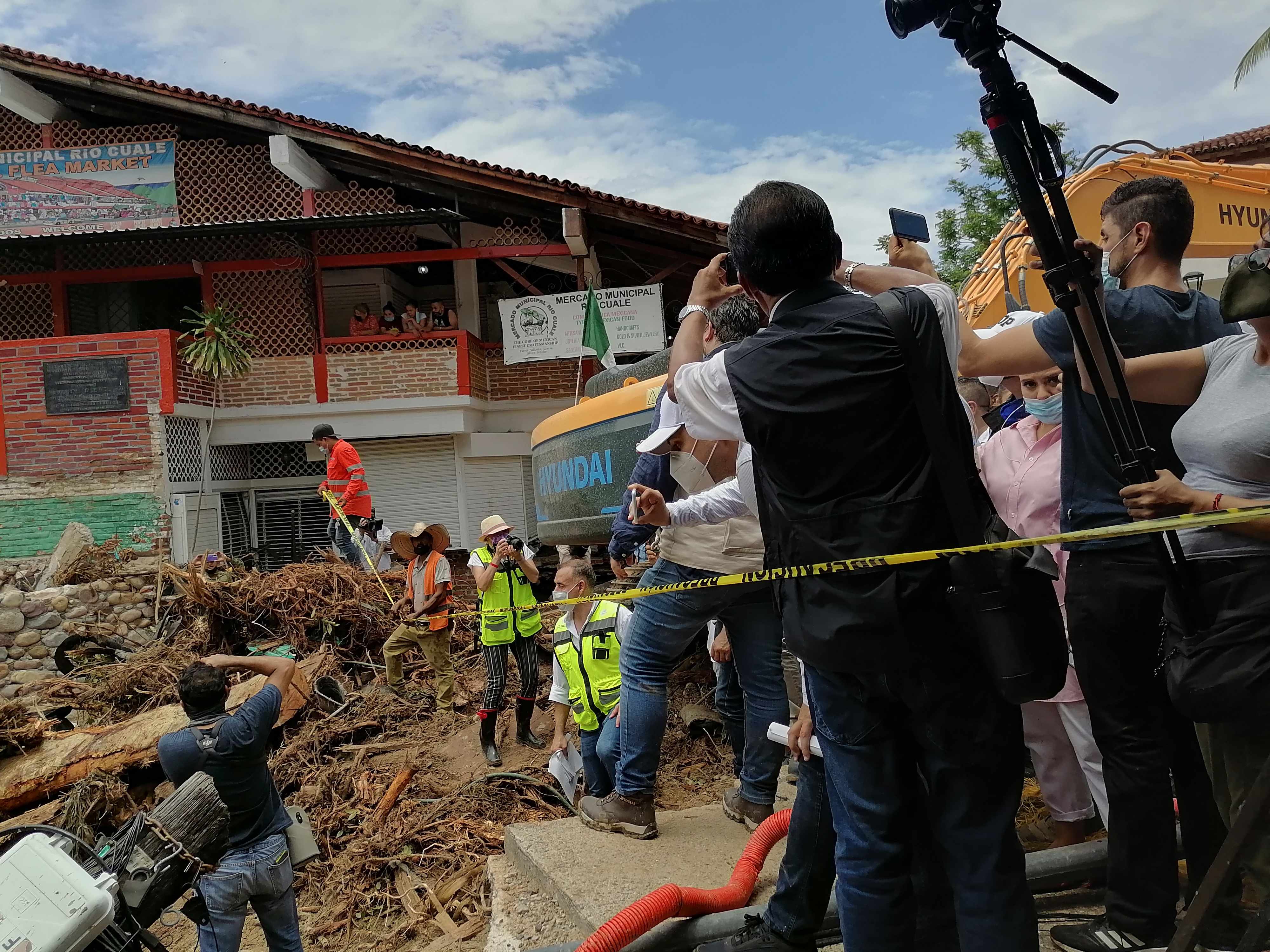 “No están solos. Estamos concentrados para ver cómo vamos a arreglar la infraestructura, ver el diagnóstico. Decirle a todos los comerciantes que le vamos a ayudar con lo que hayan perdido. En máximo 2 semanas se van a estar entregando los cheques. No los vamos a dejar solos, se va hacer el inventario de pérdidas en estos días. Lo que tenemos para desastres no alcanzaría ni para la tercera parte, pero así tengamos que cancelar proyectos y programas, no los vamos a dejar solos. Tengan unos días de paciencia”, les dijo Alfaro a los locatarios del mercado Río Cuale.