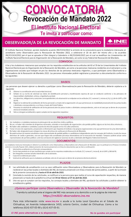 También está abierta la convocatoria para quien quiera participar como observador u observadora electoral.