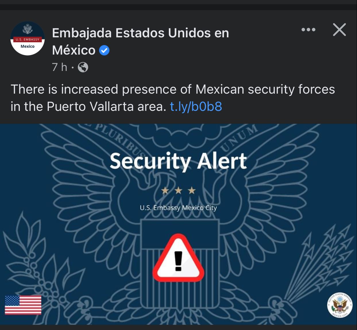 La Embajada de los Estados Unidos en México alertó a sus ciudadanos de un incremento de las fuerzas de seguridad en Puerto Vallarta a raíz de las balaceras acontecidas en la región.