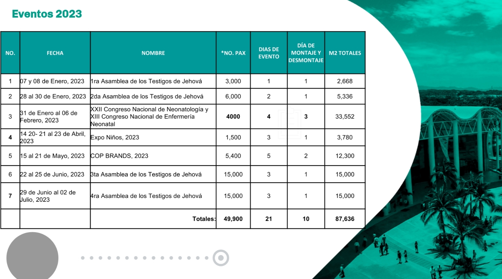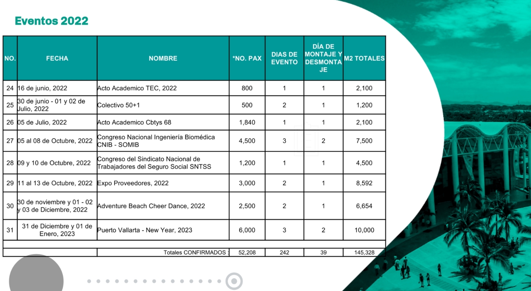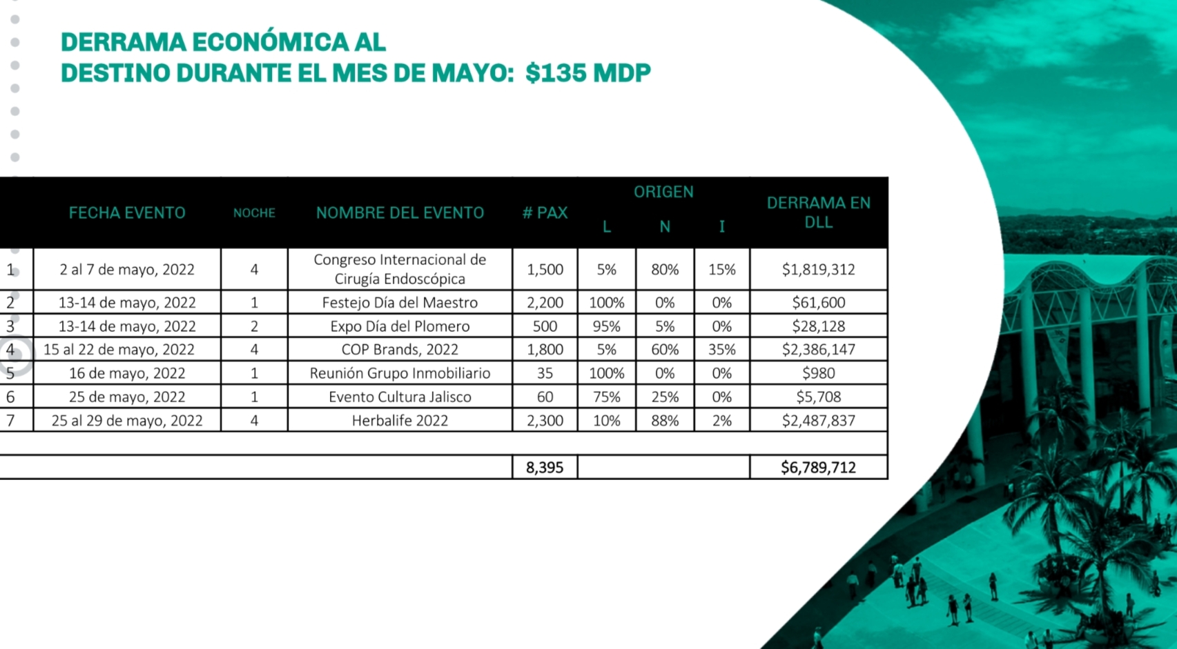 De acuerdo con datos presentados a los medios de comunicación, en 2019 se realizaron 36 eventos con una derrama al destino de 864 millones de pesos, mientras que en lo que va de 2022 se han realizado 31 eventos con una derrama superior a los 592 millones de pesos, cifra que podría aumentar debido a los eventos confirmados para el resto del año y los que podrían concretarse en próximas fechas.