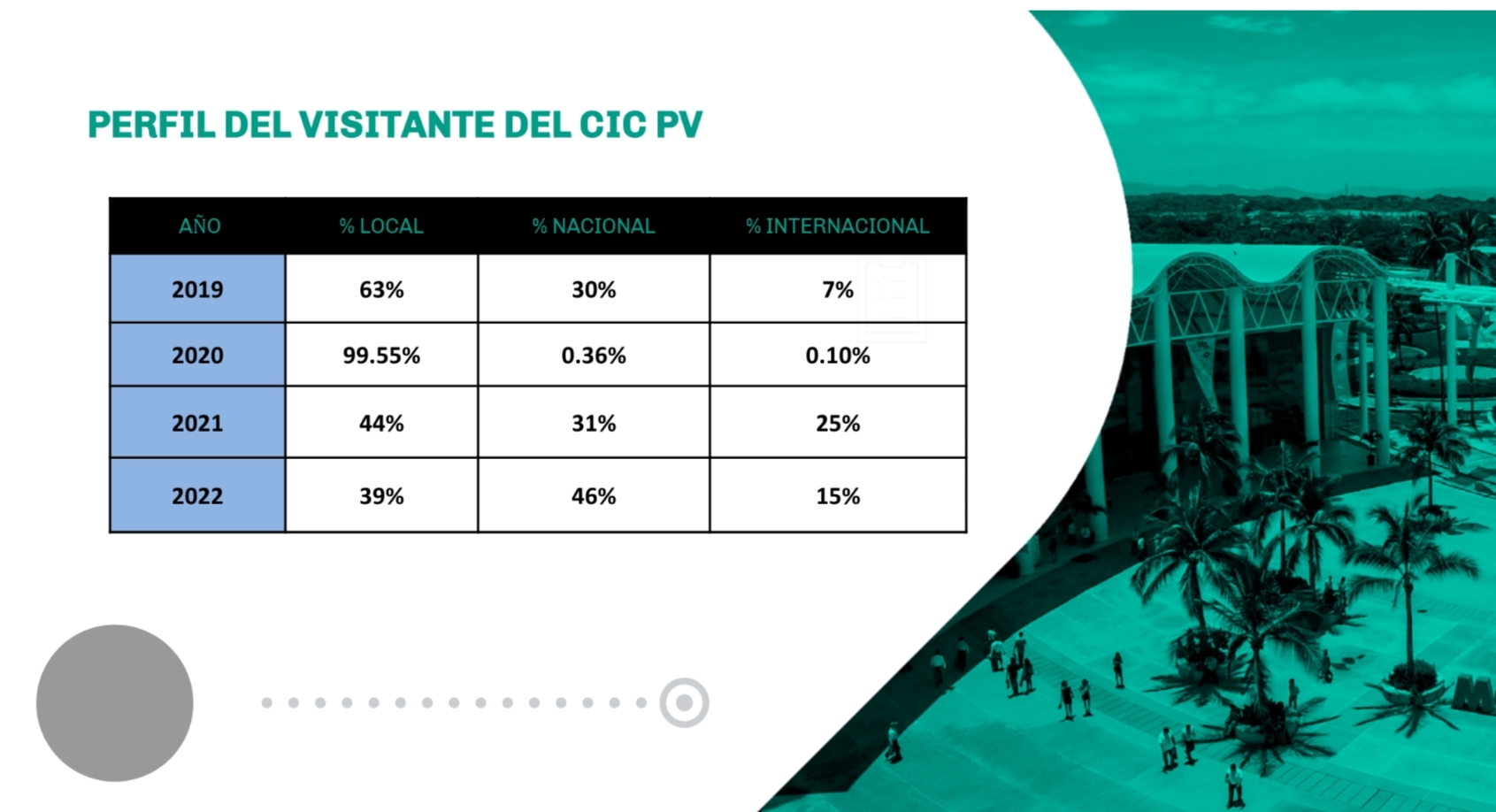 Acompañada por el director del Fideicomiso para la Promoción de Puerto Vallarta, Luis Villaseñor Nolasco, la directora del recinto mencionó que en el año 2019 se realizaron 36 eventos con un total de 109 mil 765 visitantes, lo que generó 11 millones 647 mil pesos para el recinto.