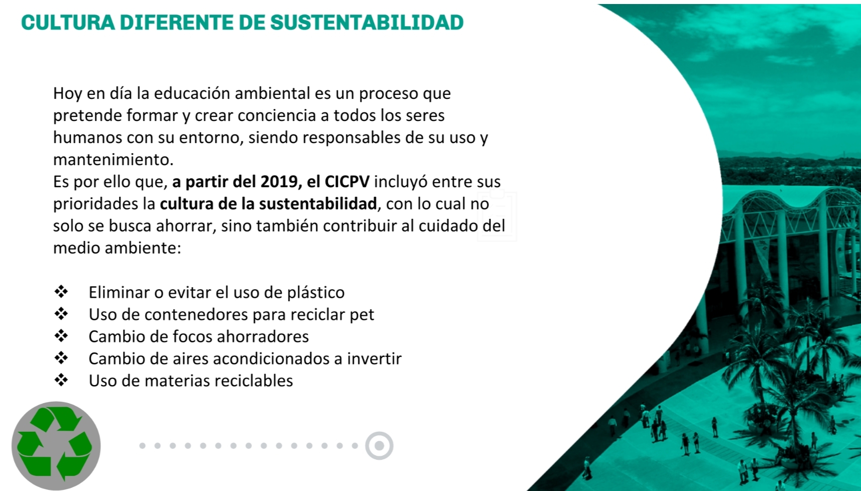 Por otra parte, la directora del recinto ferial indicó que a partir del año 2019 le han apostado a la inversión en materia de cultura de sustentabilidad y se han tomado medidas como: eliminar y evitar el uso de plásticos, uso de contenedores para reciclar pet, cambio de focos ahorradores y cambio de aires acondicionados.