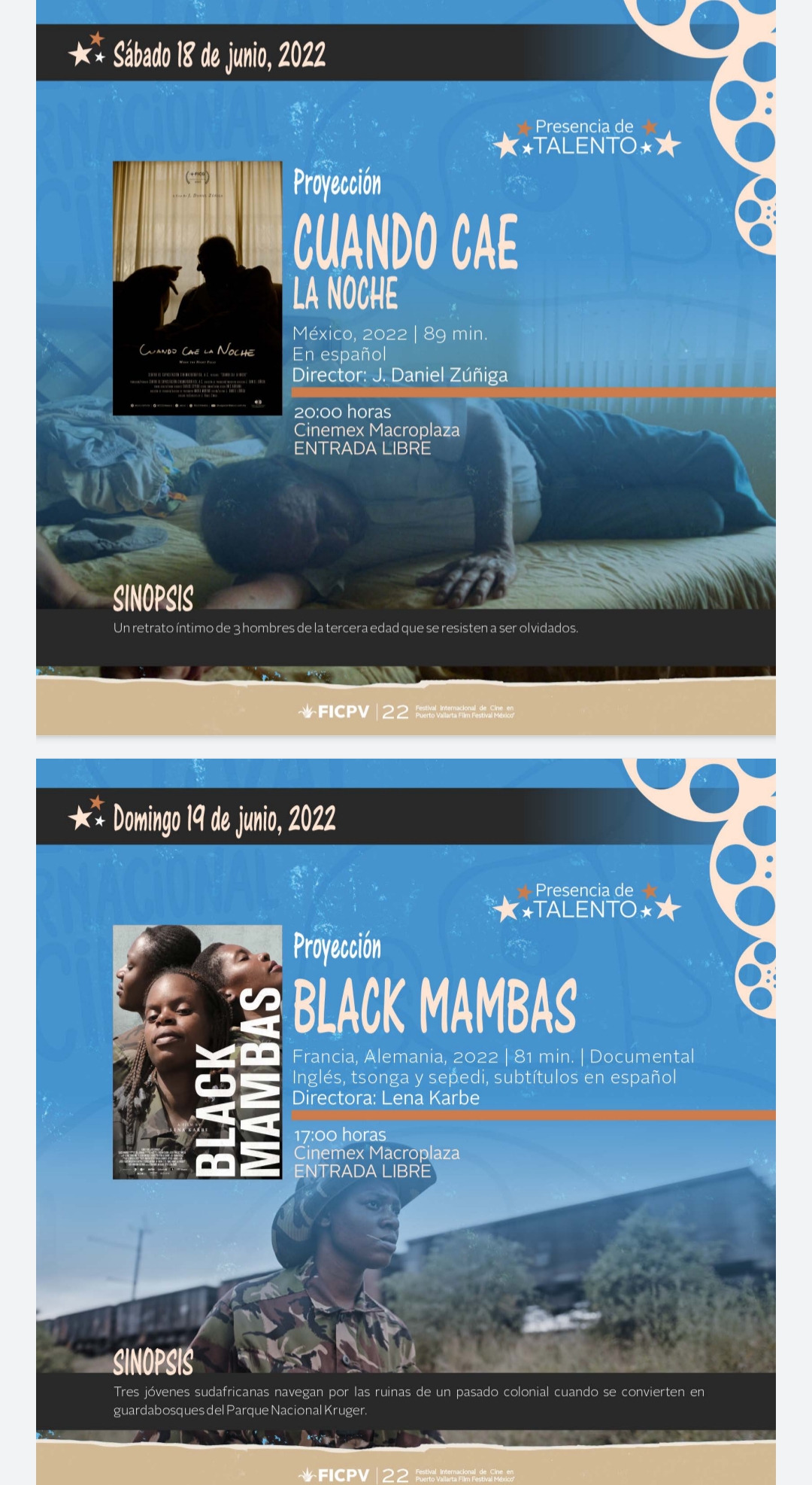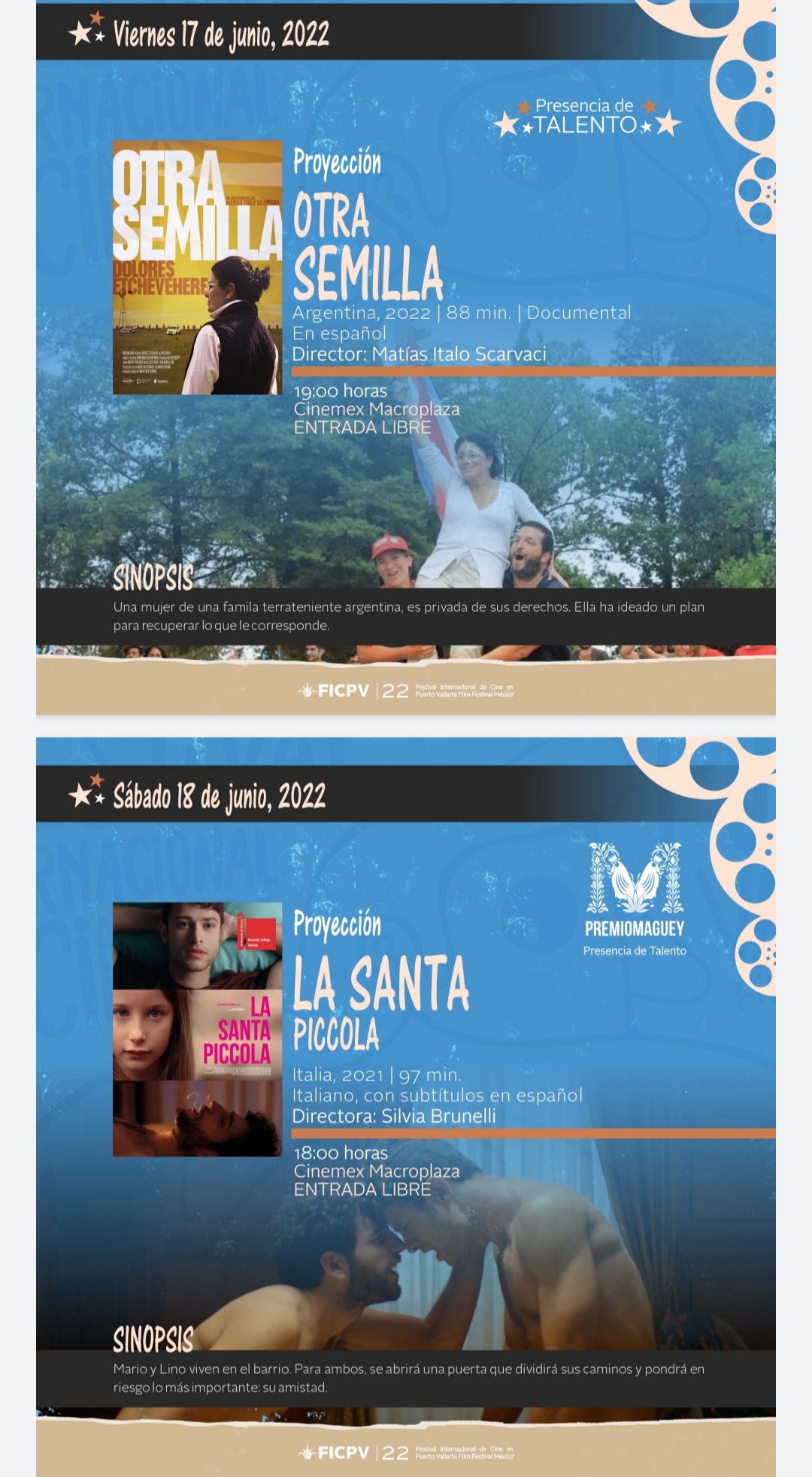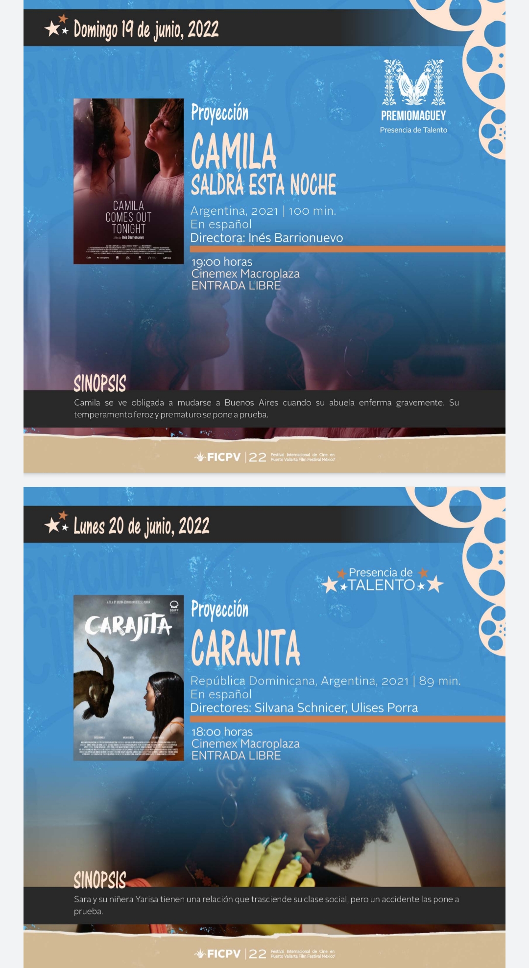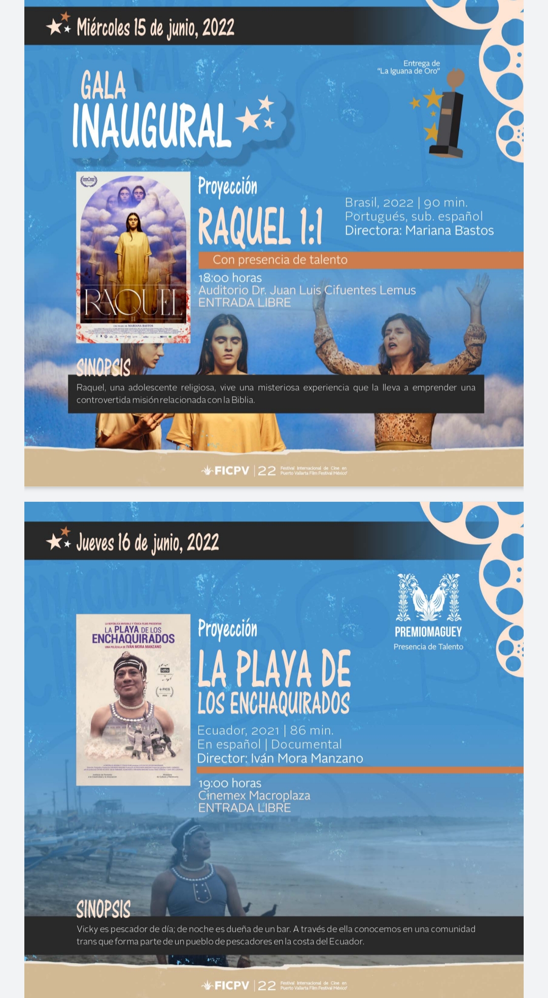 La gala inaugural se llevará a cabo el miércoles 15 de junio a las 18:00 horas con sede en las instalaciones del CUCosta y con la proyección del filme “Raquel 1:1” (Brasil, 2022) con presencia de la directora Mariana Bastos y la protagonista Valentina Herszage; quienes recibirán el máximo galardón del FICPV, la presea “La iguana de oro”.