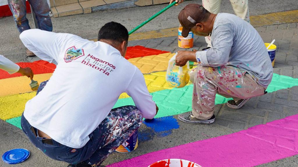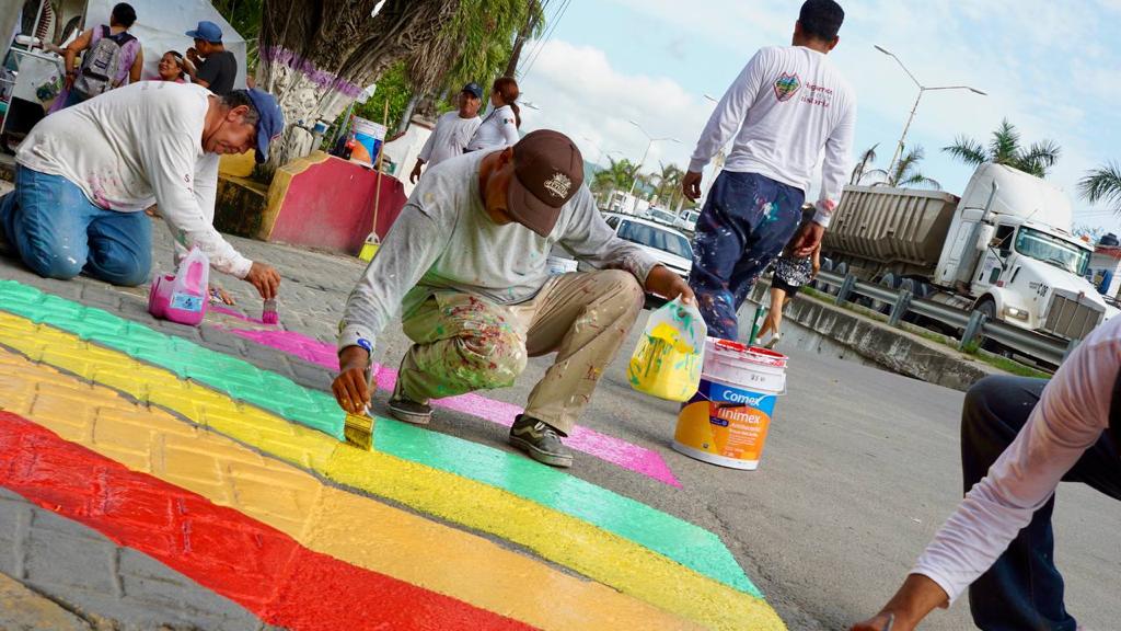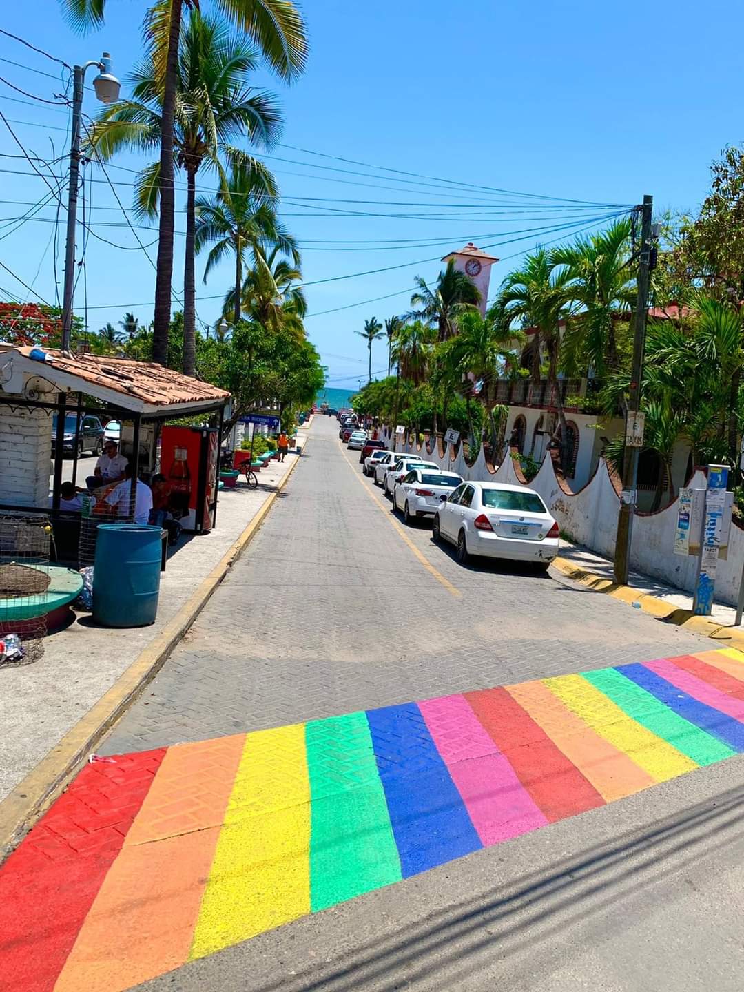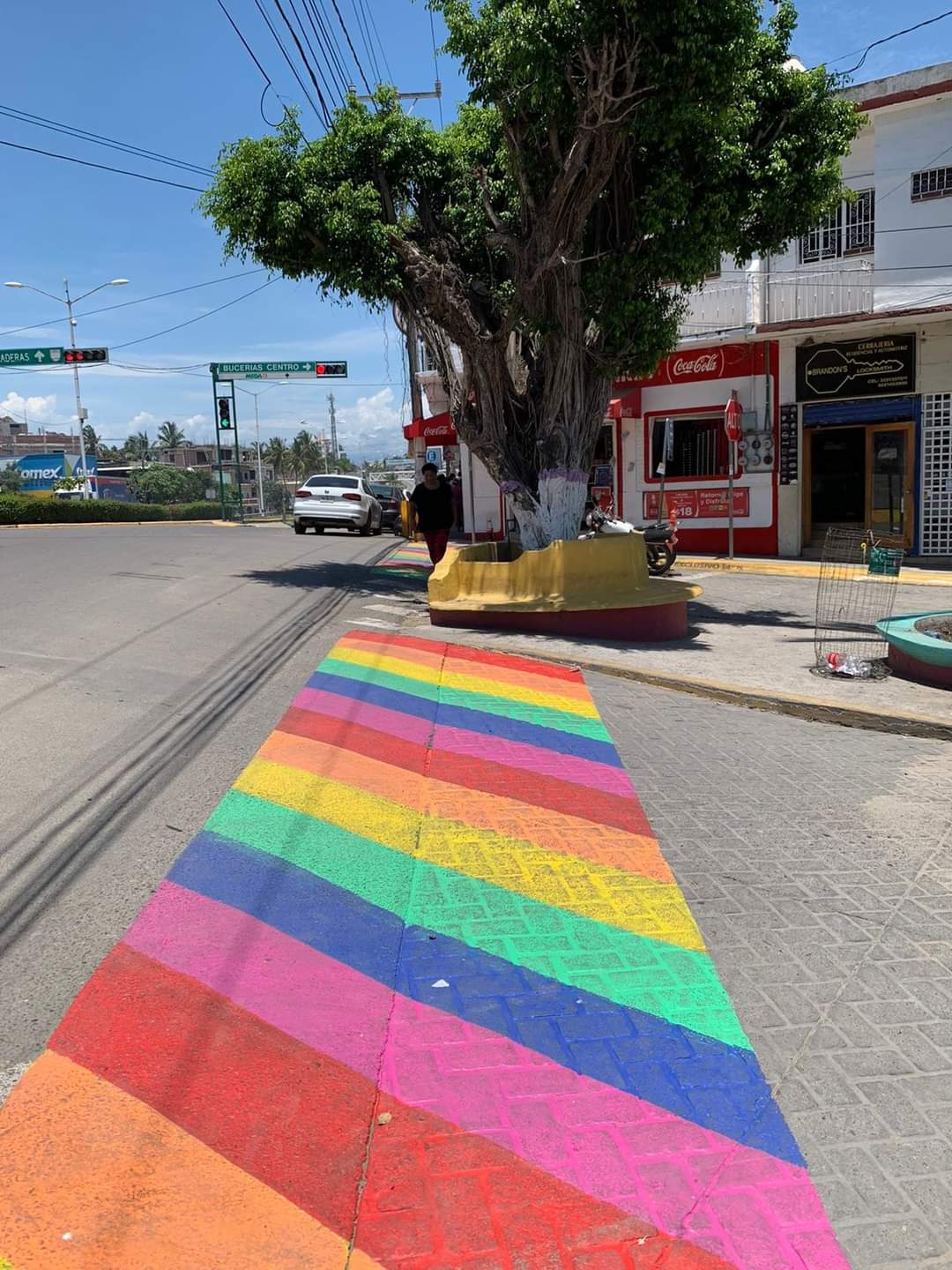 Con motivo del Día Internacional del Orgullo LGBT+ (Pride day), se pintaron las líneas peatonales de la comunidad de Bucerías de los colores que confirman el arcoíris, característicos de estas comunidades.