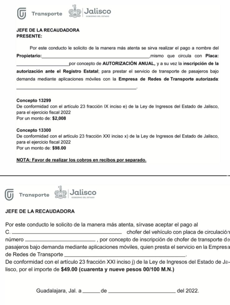 Por el trámite deberán pagar 2,008 pesos por la autorización anual, 98 pesos de la inscripción de la autorización y 49 pesos de la inscripción del chófer.