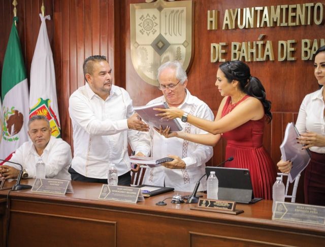 En Sesión Solemne de Cabildo, la presidenta municipal de Bahía de Banderas, entregó su Primer Informe de Gobierno a los tres poderes de gobierno, correspondiente al periodo 2021-2024, en el que destacó la coordinación y planeación estratégica entre ellos.