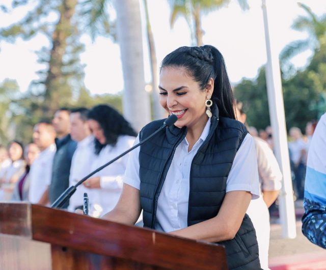 Este lunes, la presidenta de Bahía de Banderas, Mirtha Villalvazo, encabezó los honores al lábaro patrio en la plaza principal de la cabecera del municipio.