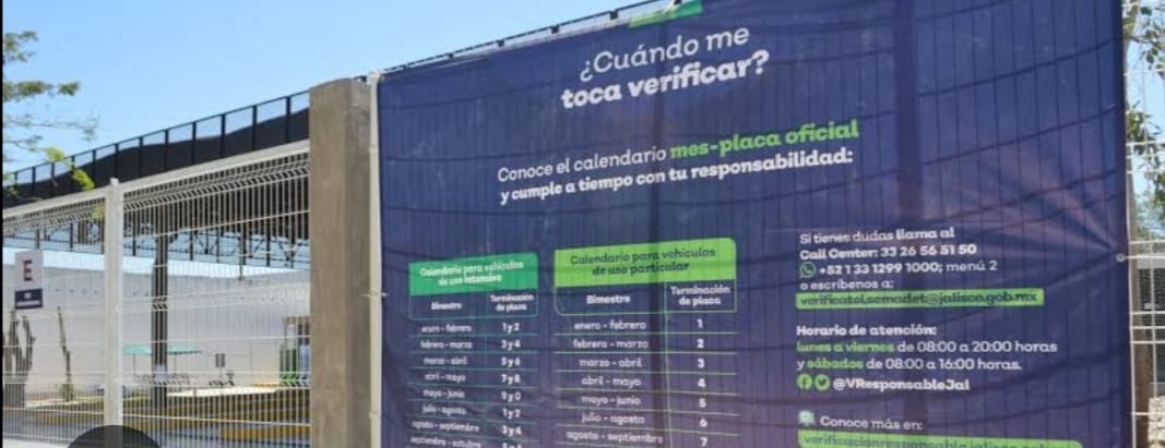 Recuerda que el calendario para realizar la verificación, a vehículos de uso particular, es el siguiente: Enero-Febrero, terminación placa 1; Febrero-Marzo, terminación placa 2; Marzo-Abril, terminación placa 3; Abril-Mayo, terminación placa 4; Mayo-Junio, terminación placa 5; Julio-Agosto, terminación placa 6; Agosto-Septiembre, terminación placa 7; Septiembre-Octubre, terminación placa 8; Octubre-Noviembre, terminación placa 9; Noviembre-Diciembre, terminación placa 0.