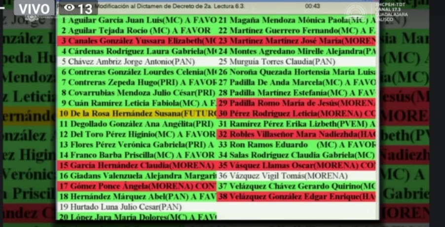 Al precisar que coincide con la postura de rechazo de su similar de Hagamos, Enrique Velázquez, sostiene que el dictamen expuesto, no respetó el proceso técnico entre la Comisión de Competitividad y Educación respectivamente, pues esta última, debió turnarla primero a la Mesa Directiva, que a su vez tendría que remitirla a la primera antes citada, como requisito indispensable para modificarlo en segunda lectura, no hacerlo con estrechamiento de términos, con el fin de asegurar su aprobación definitiva. Cabe destacar que tal apuesta, tuvo 24 sufragios a favor, nueve en contra de morenistas y fracción de Hagamos, así como una abstención de Futuro.