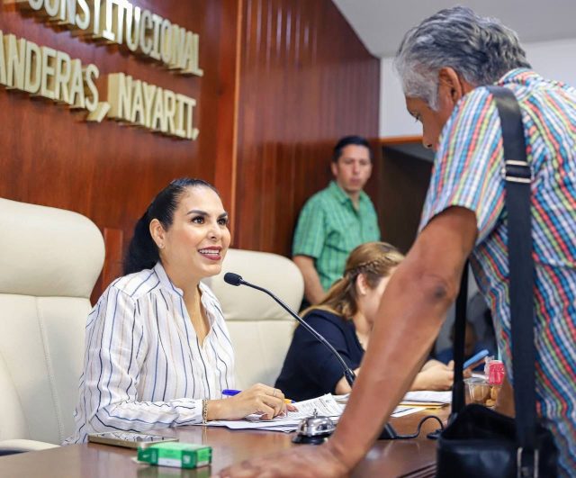 Cerca de cien ciudadanos de Bahía de Banderas recibió la presidenta municipal, Mirtha Villalvazo, en audiencia pública, con la intención de escuchar y conocer de primera mano sus necesidades o situaciones que les aquejan.