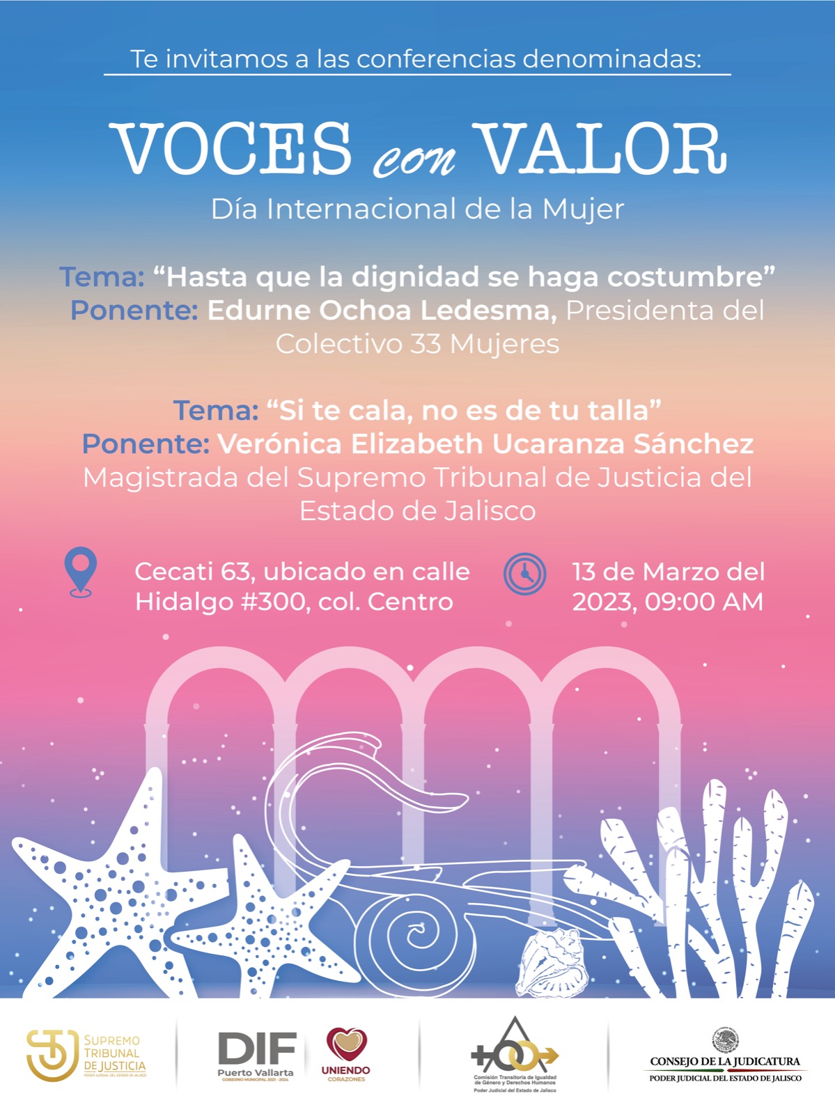 Como parte de las actividades conmemorativas en el marco del Día Internacional de la Mujer, el Sistema DIF de Puerto Vallarta que preside María de Jesús López Delgado, extiende la invitación a las mujeres y público en general a asistir al ciclo de conferencias denominado “Voces con Valor”.