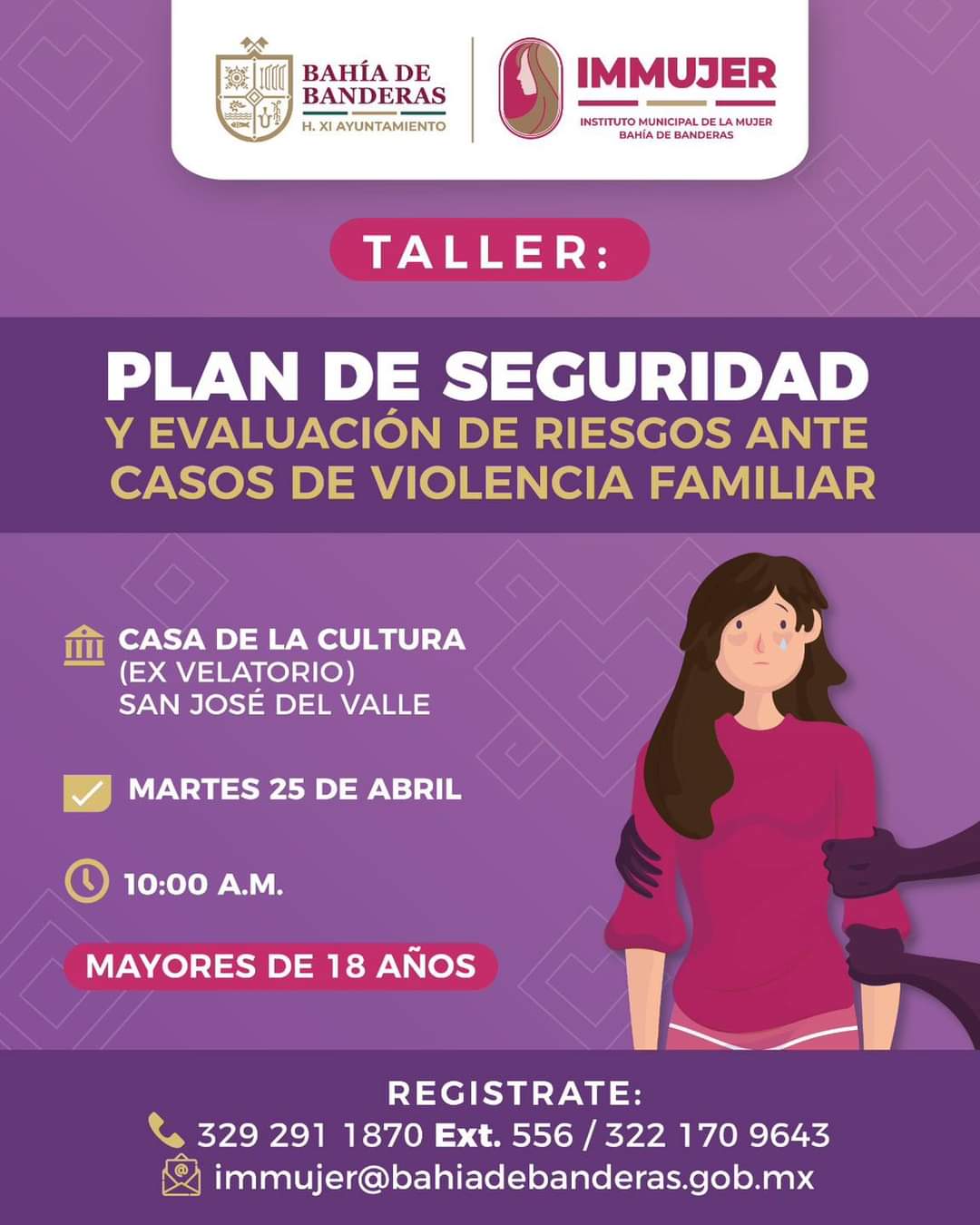 La capacitación sobre el _Plan de Seguridad y Evaluación de Riesgo ante Casos de Violencia Familiar_ está dirigida a personas de 18 años en adelante y para inscribirse solo es necesario llamara a los teléfonos 329 291 1870, extensión 556, y 3221709643.