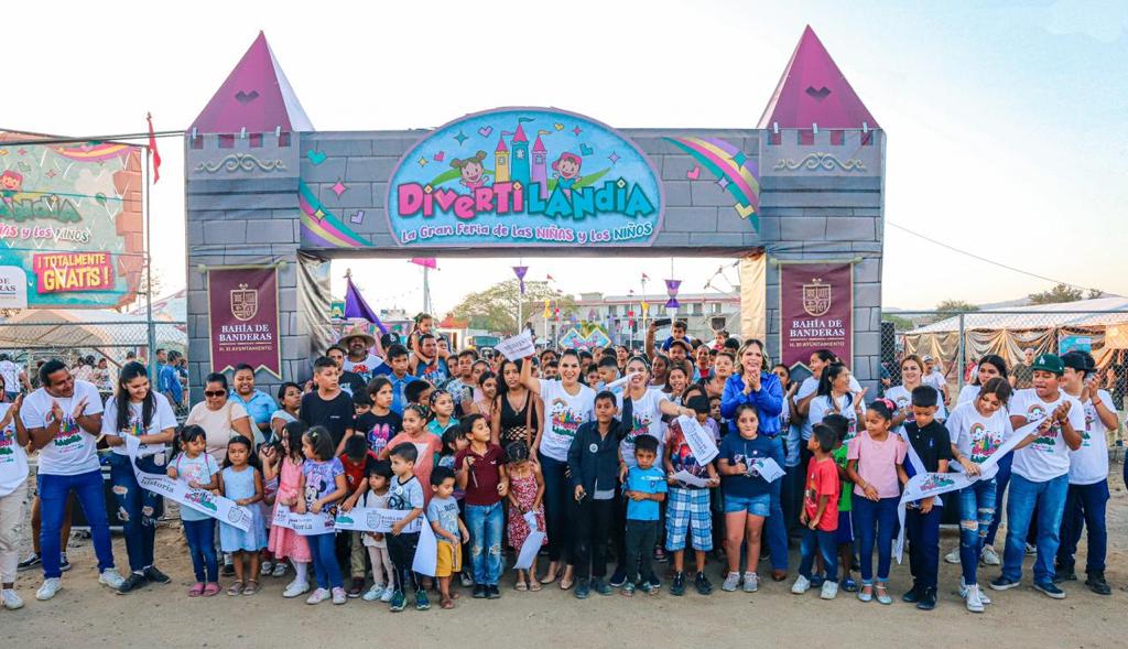 “Los niños tienen derecho a sonreír”, así expreso la presidenta de Bahía de Banderas Mirtha Villalvazo Amaya, en la feria más divertida para todas las niñas y los niños llamada Divertilandia, que el gobierno de Bahía de Banderas por motivo del día de la niña y el niño, organizó para que todas y todos los pequeñines se diviertan y disfruten las atracciones mecánicas, shows, rifas, circo y más sorpresas, en la explanada de Mezcales, así destacó la alcaldesa el primer día de Divertilandia.