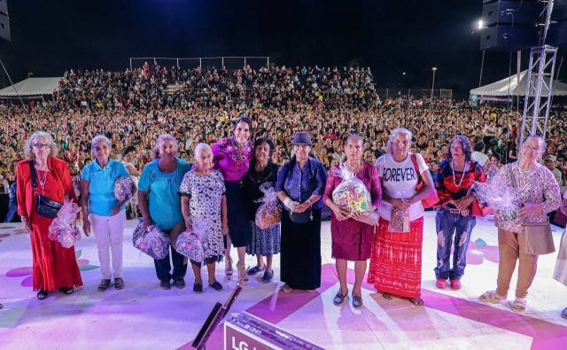 Señalado como el mejor festejo que se ha dado a las mamás en Bahía de Banderas, se vivió este sábado en la unidad deportiva de Bucerías, en donde acudieron miles mamás que llegaron a disfrutar de la buena música, concursos, cena y sobre todo la rifa de un departamento, una remodelación y una moto, además de 50 regalos como lavadoras, camas, refrigeradores, estufas y salas, culminado con un gran baile con la Sonora Dinamita.