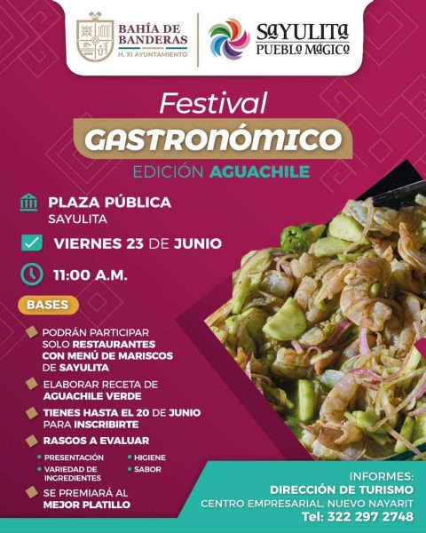 El gobierno de Bahía de Banderas llevará a cabo el Festival Gastronómico, Edición Aguachile, este viernes 23 de junio en la plaza pública del Pueblo Mágico de Sayulita.