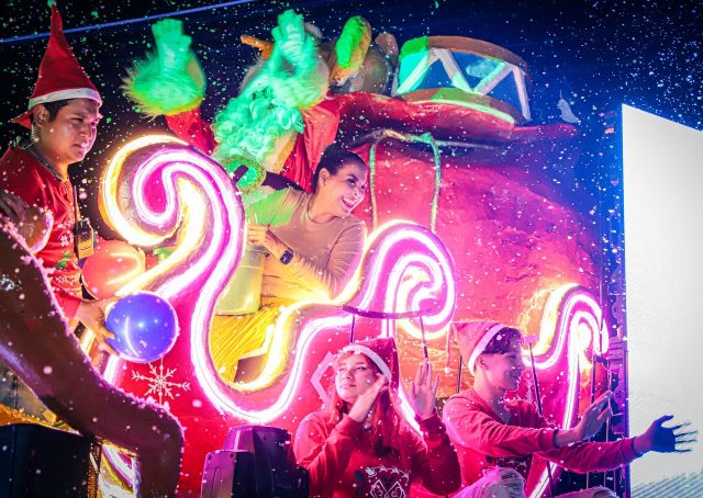 Cabe destacar la gran producción de los carros alegóricos cargados de luces de colores, dulces y motivos festivos que representaron al Trineo de Santa Claus, la Piñata Navideña, el Árbol de Navidad, la Villa de Santa Claus, una muñeco de jengibre; además de las distintas caracterizaciones de elfos, muñecas y galletas, personajes de Disney y por supuesto no podía faltar, el Grinch.