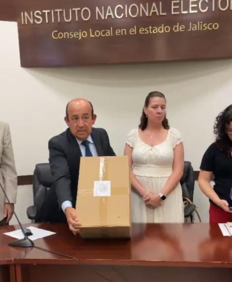 “…El día de ayer obtuvimos, nos hicieron llegar de la Ciudad de México de Oficina Central, viene sellado y cerrado el paquete. Se abrió para el conteo y sellado supervisado de las tres mil 208 boletas, con la que podrán emitir su voto, de manera anticipada, aquellas personas que se encuentran en Prisión Preventiva en la Entidad, cuya recepción estuvo a cargo de las y los presidentes de los consejos distritales de Tequila, Ameca, Lagos de Moreno, Tepatitlán de Morelos, Puerto Vallarta, Jocotepec, Autlán de Navarro, Zapotlán el Grande y Tonalá, donde están ubicados los reclusorios, incluido el de Puente Grande…”