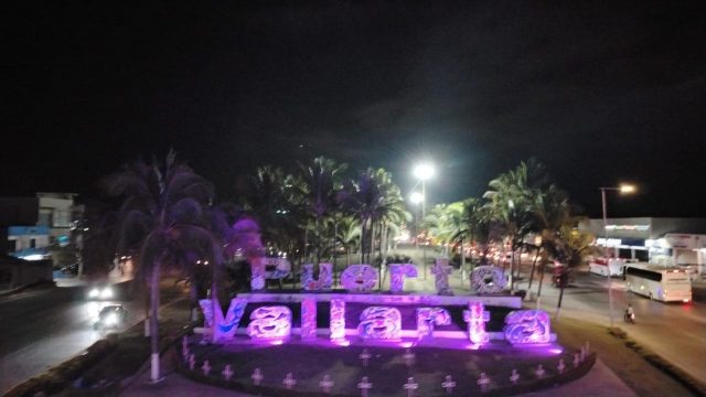 Iluminan de Color Morado Edificios Emblemáticos y Espacios Públicos en Vallarta