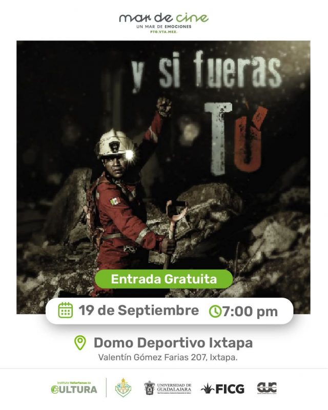 El Instituto Vallartense de Cultura, con el respaldo del gobierno de Luis Munguía, invita a la ciudadanía a disfrutar del programa Mar de Cine este viernes 19 de septiembre en el Domo Deportivo de Ixtapa. La función gratuita iniciará a las 7:00 p.m. con la proyección del documental ¿Y si fueras tú?.