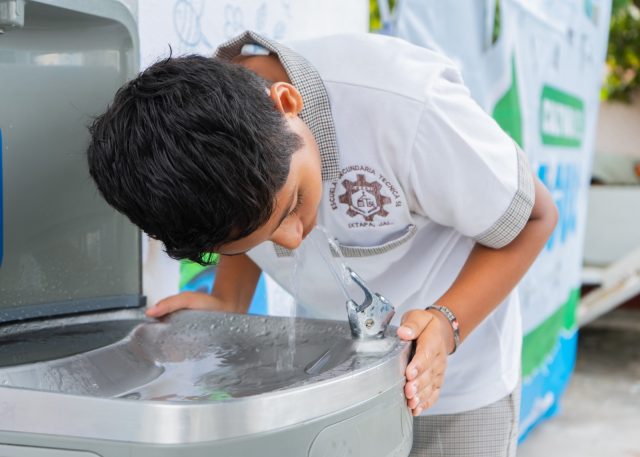 La primera escuela beneficiada con la iniciativa es la Secundaria Técnica 56 de ladelegación Ixtapa, donde más de 1,200 estudiantes de este plantel tendrán accesoal agua de calidad de manera gratuita, beneficiando su salud y la economía de sufamilia.