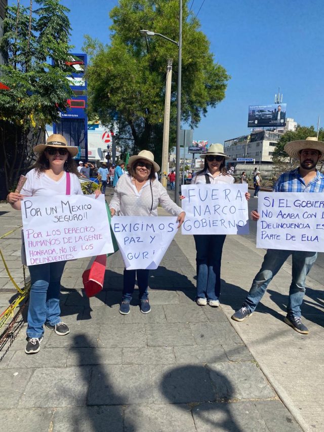 El contingente guiado por diversas agrupaciones ciudadanas, guardó un minuto de silencio, afuera de Casa Jalisco, en memoria de Carlos Manzo, alcalde asesinado de Uruapan, el pasado 1 de noviembre, cuyo trabajo centró en la defensa de la seguridad y combate a los carteles que asolan la vida social de su localidad, cobros de derecho de piso y otros.