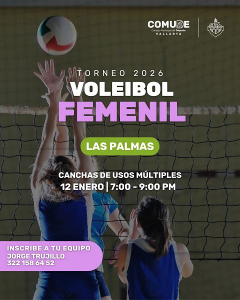 Las canchas de usos múltiples de la delegación Las Palmas se llenarán de energía y deporte este lunes 12 de enero, con la realización de los Torneos 2026 de Voleibol Femenil y Varonil, impulsados por el gobierno de Luis Munguía González, a través del Consejo Municipal del Deporte (COMUDE) Puerto Vallarta.
