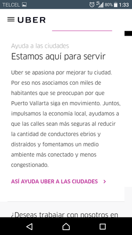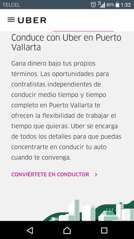 “Uber se apasiona por mejorar tu ciudad. Por eso nos asociamos con miles de habitantes que se preocupan porque Puerto Vallarta siga en movimiento. Juntos, impulsamos la economía local, ayudamos a que las calles sea más seguras al reducir la cantidad de conductores ebrios y distraidos y fomentamos un medio ambiente más conectado y menos congestionado”, apunta su página oficial.